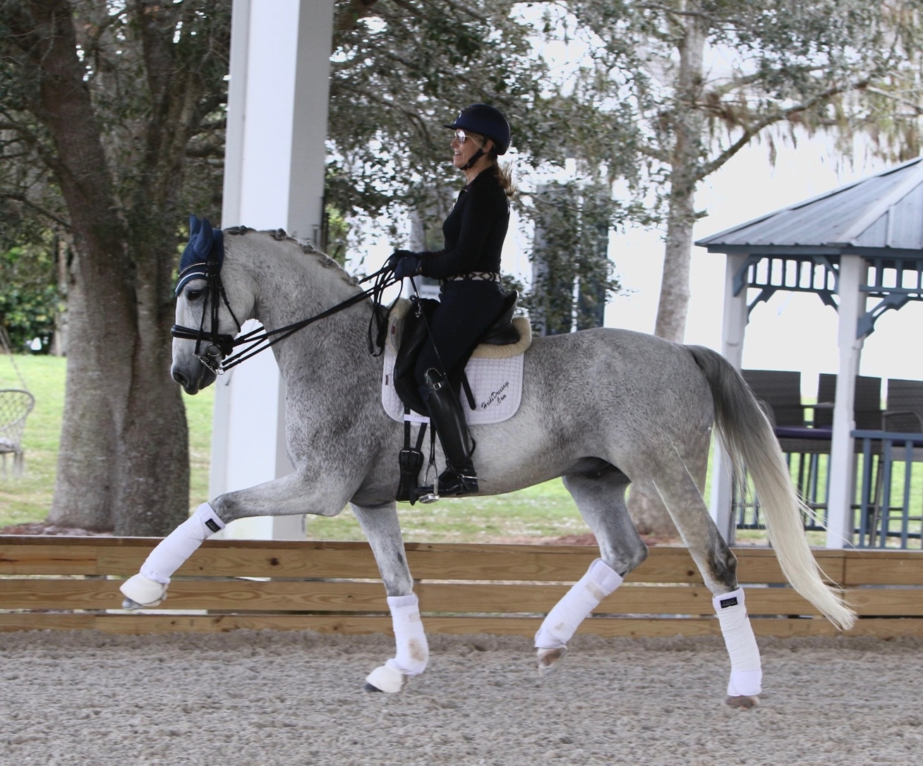 Bon Voyage 39 is an eye catching grey 2015 Westphalian gelding who has successfully shown through PSG and schools all the small tour. He has 3 comfortable, correct and flashy gaits with highlights of fantastic lateral work and easy flying changes. Bon Voyage has a lovely and simple connection to the bridle and is light and easy to ride. He is forward thinking and shows lots of ability to continue moving up the levels. Bon Voyage would be a great horse for an ambitious amateur or JR/YR. This quality horse is a barn favorite, tons of fun to ride and will make someone a fantastic partner.